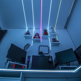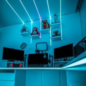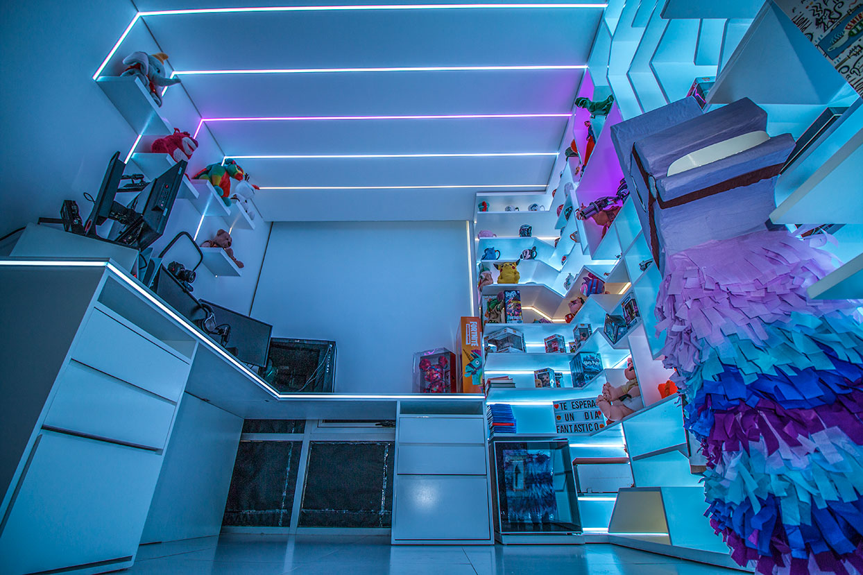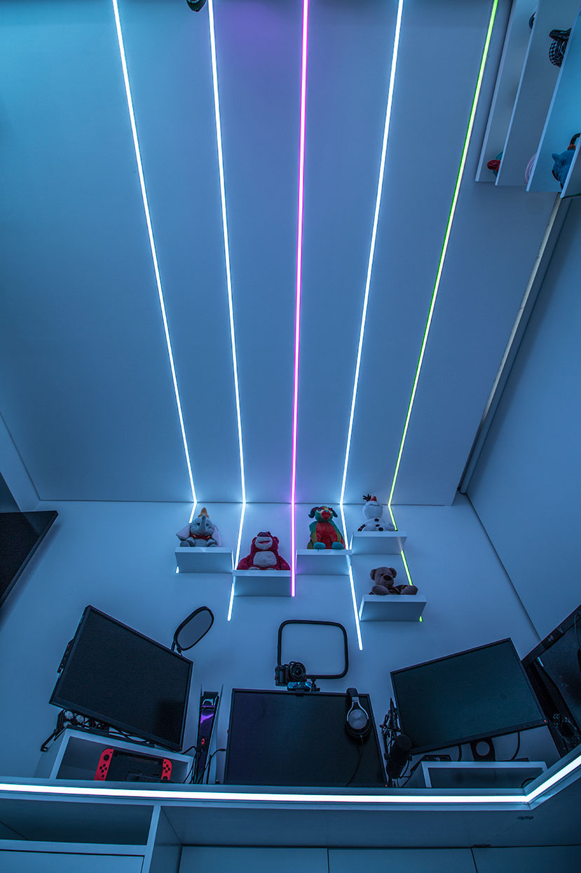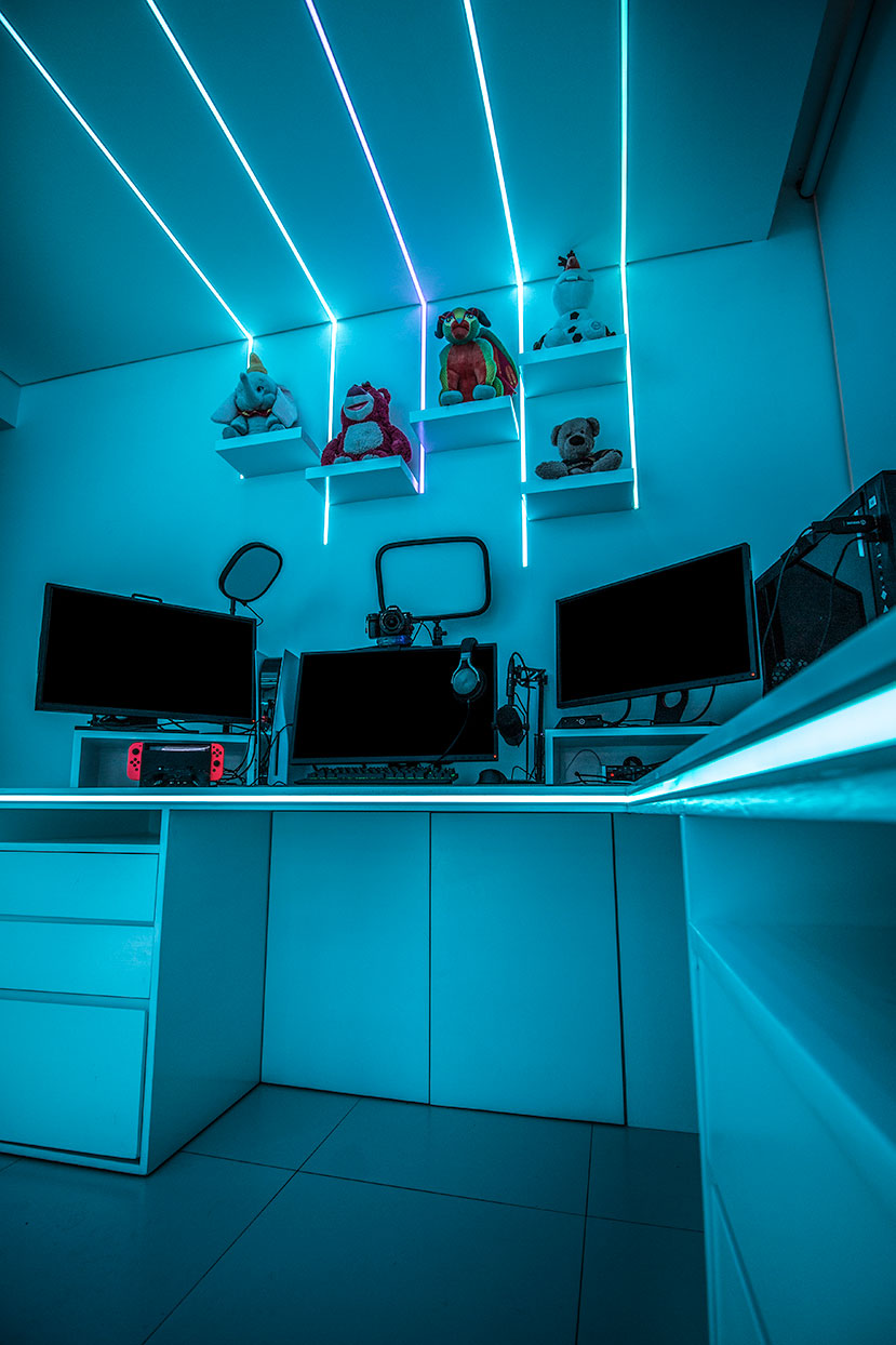 Proyecto de diseño y ejecución de set up gamer para @miguelangelxde. Fotografías tomadas por @Ilumileds.oficial