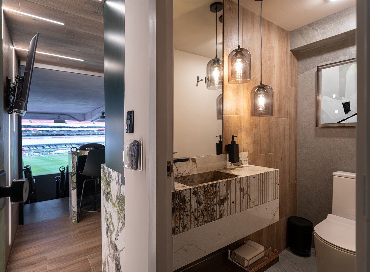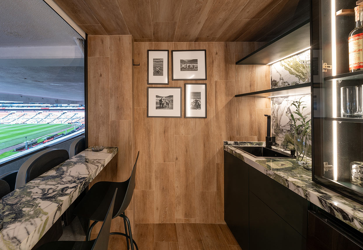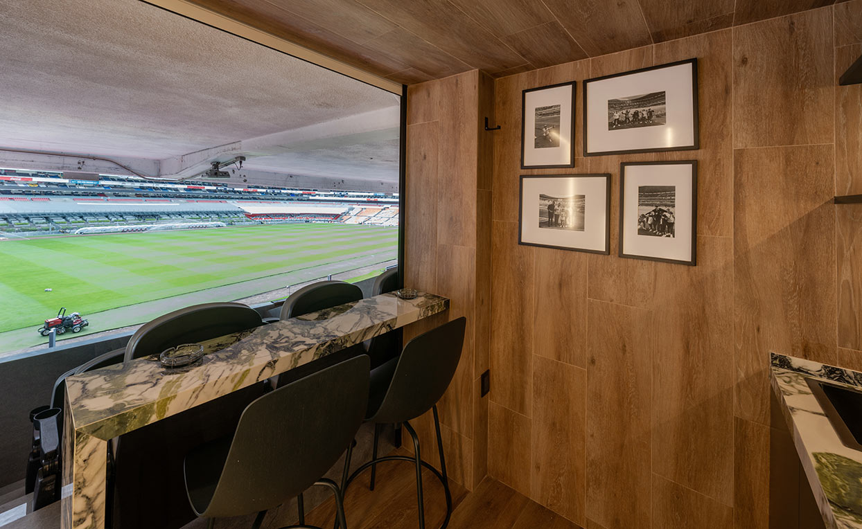 Remodelación de palco en el Estadio Azteca. Proyecto de interiorismo, ejecución y supervisión de obra, fabricación de mobiliario.Fotografías tomadas por @jaimenavarros_estudio