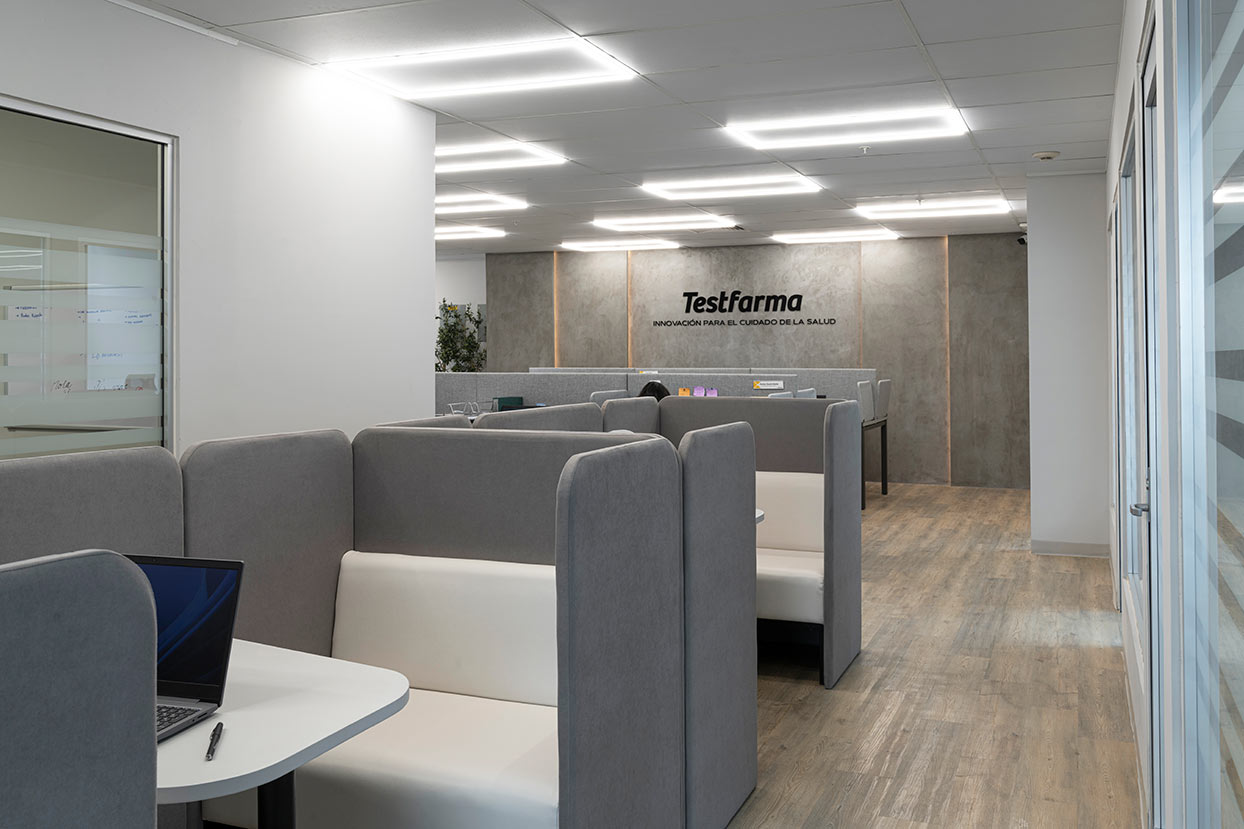 Remodelación de oficinas para Test Farma. Proyecto de interiorismo, ejecución y supervisión de obra, fabricación de mobiliario. Fotografías tomadas por @jaimenavarros_estudio